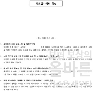 보험사에서는 당연히 사고관여도확인과 후유장해에 대한 의료자문을 진행하였고,