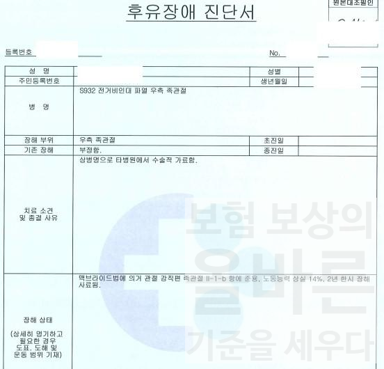 후유장해 진단 진행하였습니다.